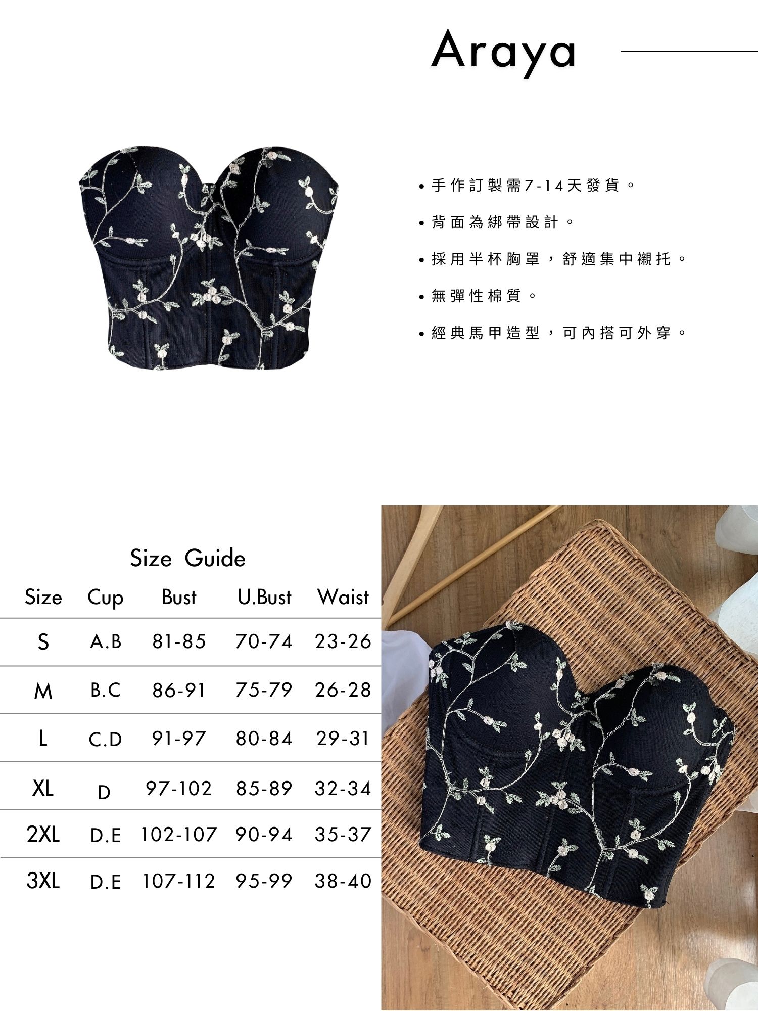 .採用半杯胸罩,舒適集中襯托。