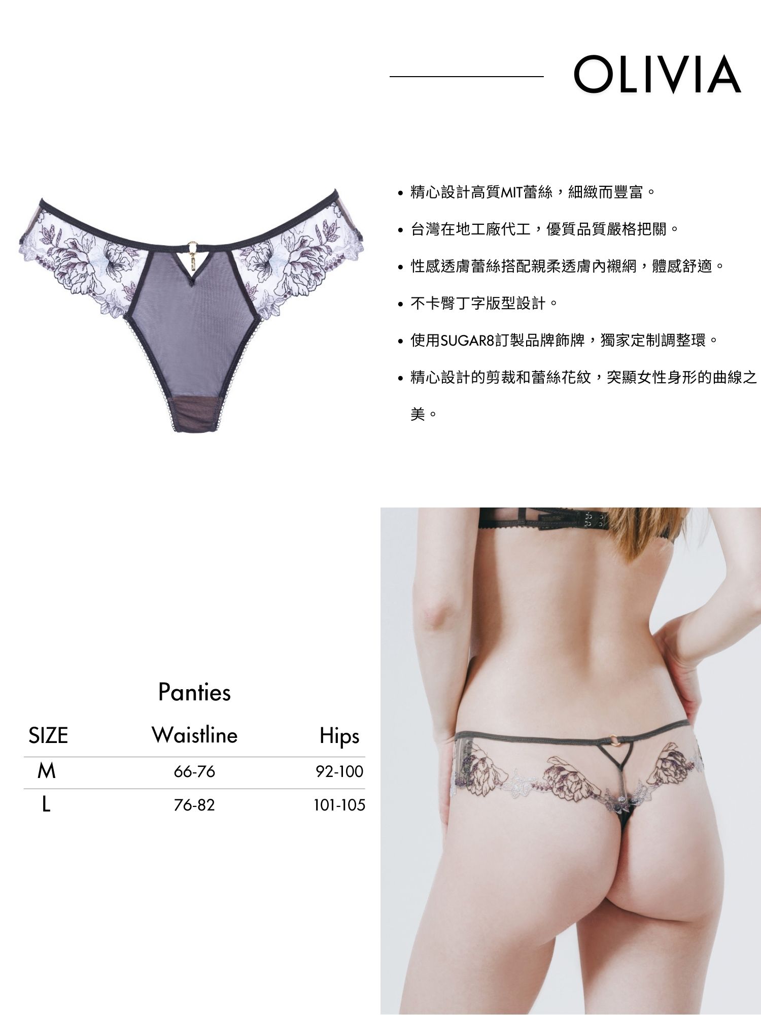 .性感透膚蕾絲搭配親柔透膚內襯網,體感舒適。​