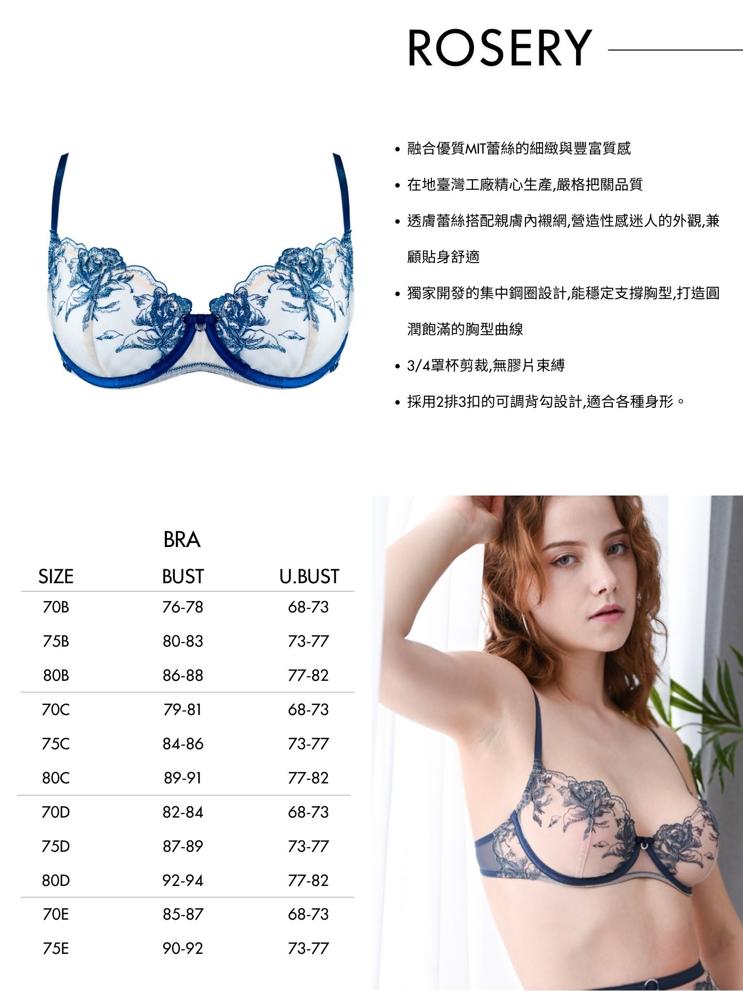.鋼圈穩定支撐,集中圓潤胸型,PUSHUP集中托高。​